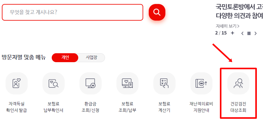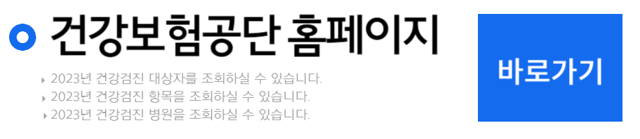 아래 버튼을 통해 건강보험공단으로 이동 후 건강검진 대상자 조회를 클릭하시면 됩니다.