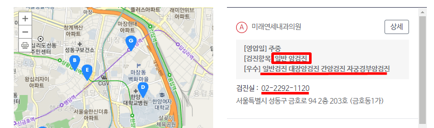 검색결과에 나오는 병원 중 검진실 번호를 통해 예약 할 수 있습니다.