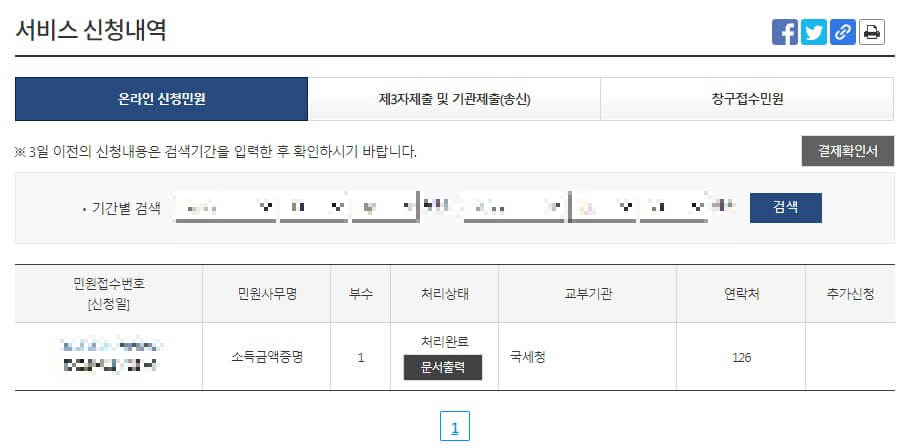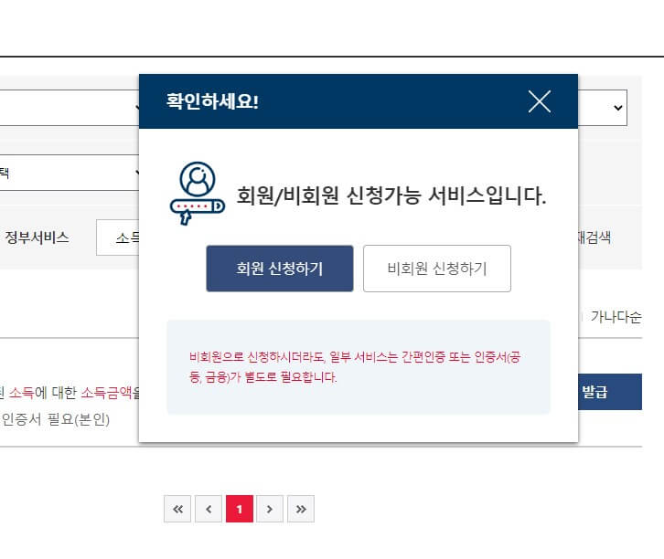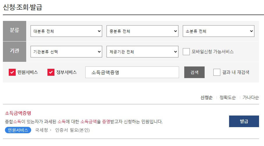 1. 정부24 홈페이지에 접속 후 소득금액증명을 검색합니다.