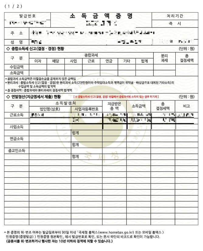 ※ 연말정산 및 근로소득자용은 매년 5월, 종합소득세 신고용은 매년 7월 이전에는 전전년도까지만 발급이 가능합니다. (예시 : 2023년 1월인 경우 2021년 까지 가능)