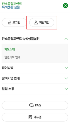 🌱회원가입을 완료하였다면 아래 매뉴얼을 다운로드하여 참여 업체 앱을 통해 탄소중립실천포인트 적립을 시작합니다.